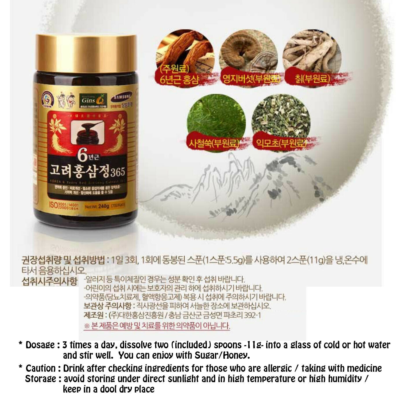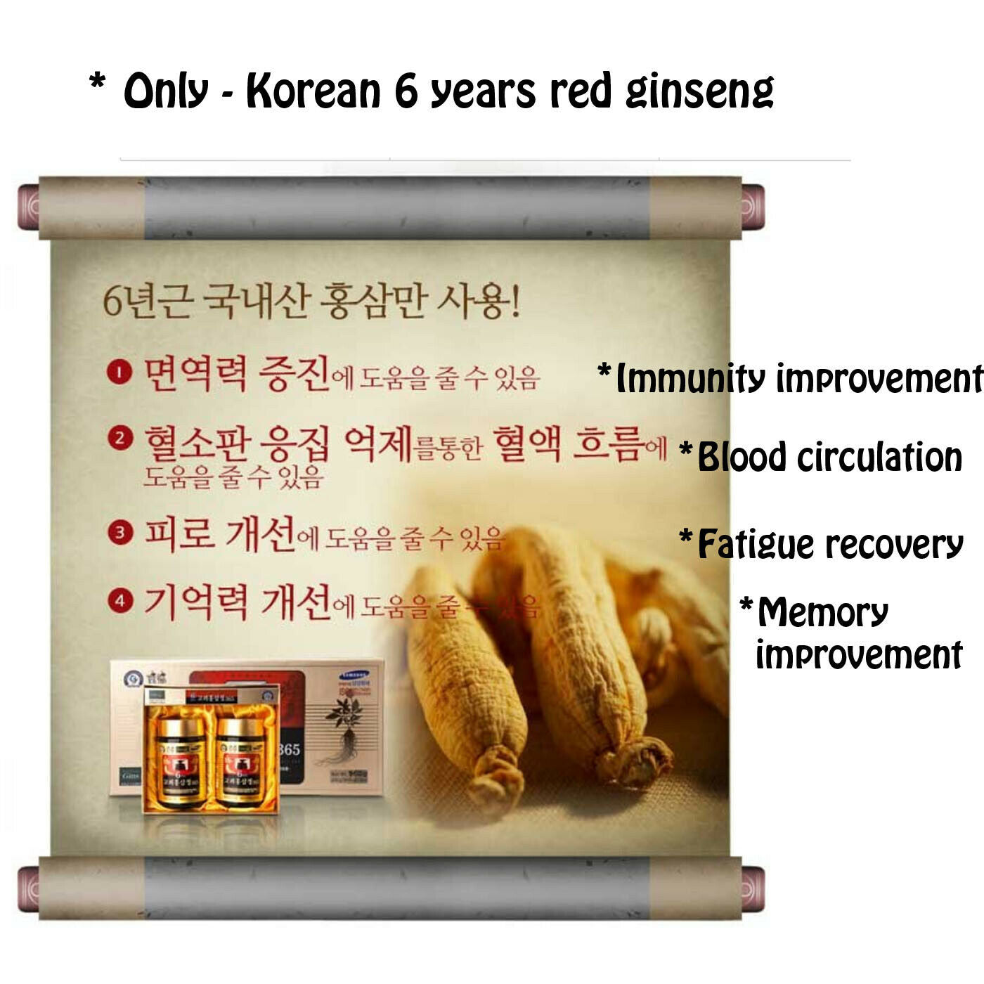 * Product Function : Korean 6-years red ginseng extract 365 gives new strength to your body, revitalizing your health.