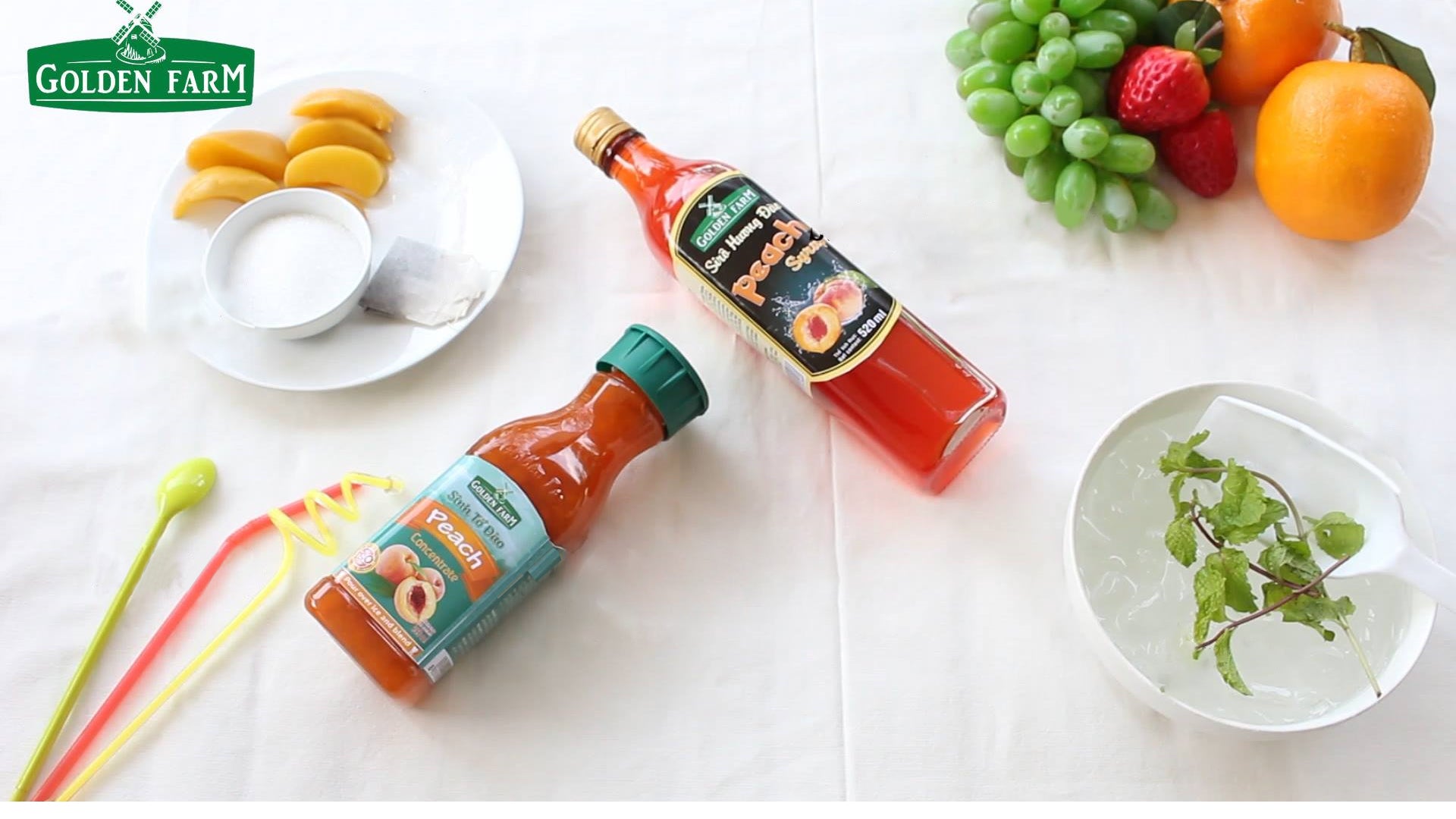 Golden Farm Peach Smoothie with main ingredients are fresh fruits, carefully selected from Da Lat farms, does not contain chemical sugar, helping to fully retain the pure taste and nutrients from nature.